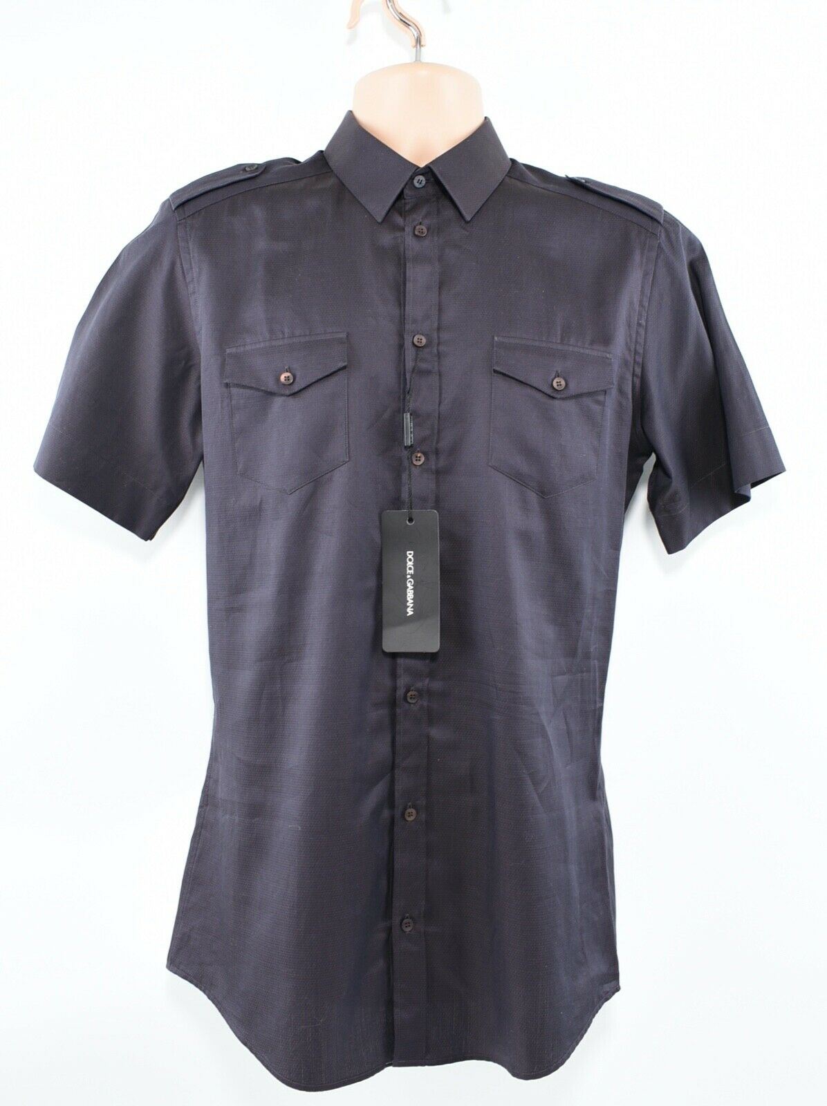 DOLCE & GABBANA Men's Short Sleeve Shirt, SLIM FIT, Deep Brown, collar 15.5"
