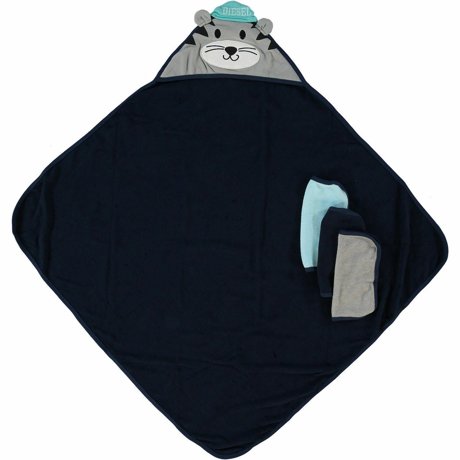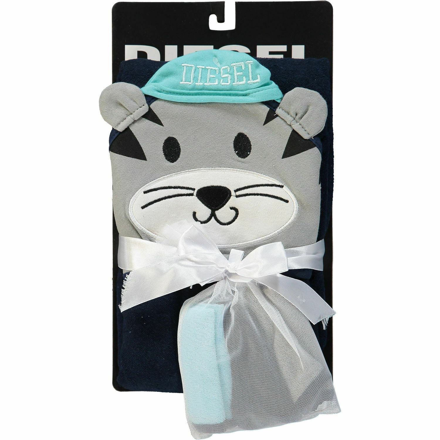 DIESEL Baby Boys' 4-pc Navy Hooded Bath Set, Tiger Themed, newborn to 6 months