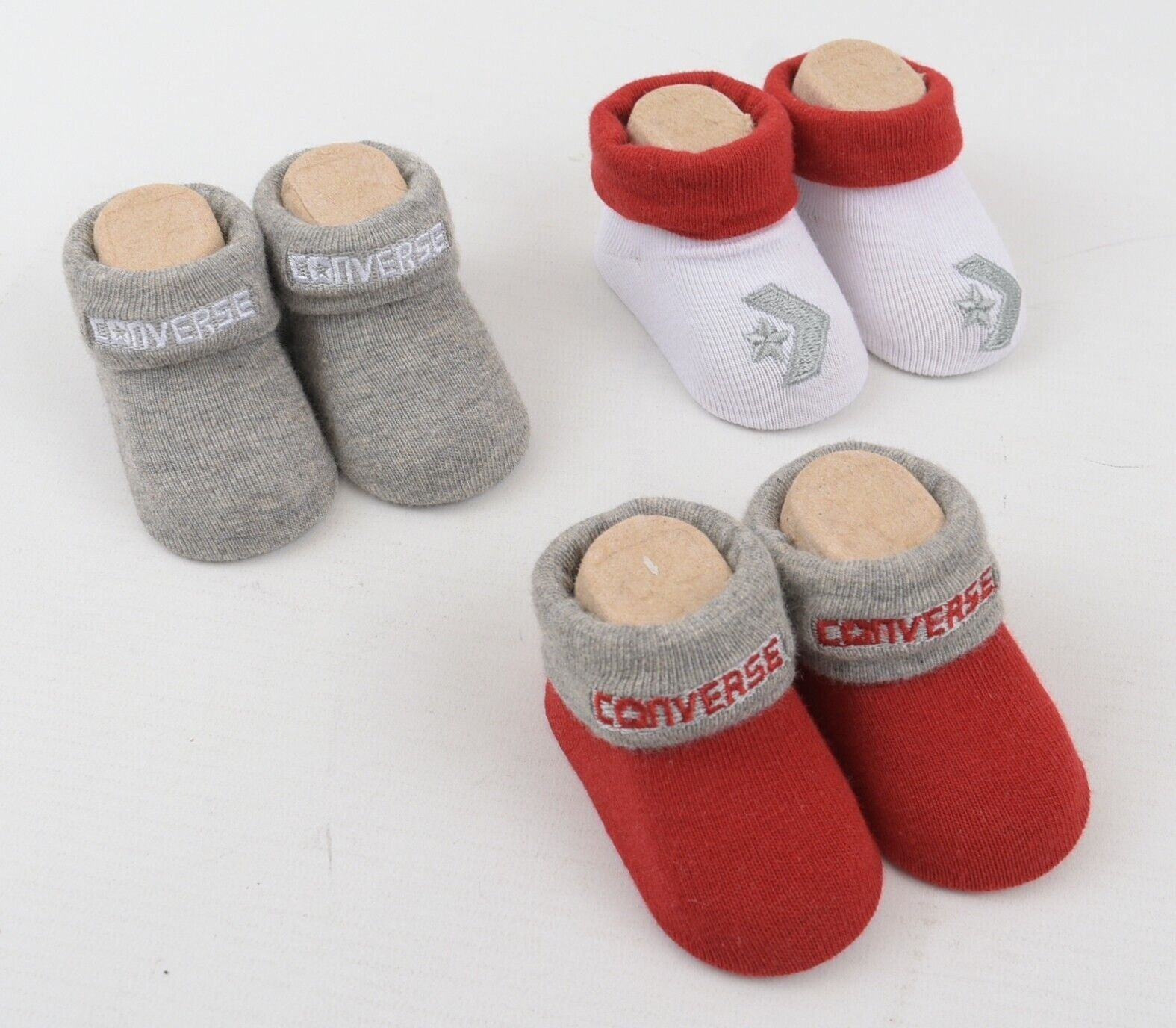 CONVERSE Baby Girls' Boys' 3-pack Sock Booties, White/Red/Grey, 0-6 months