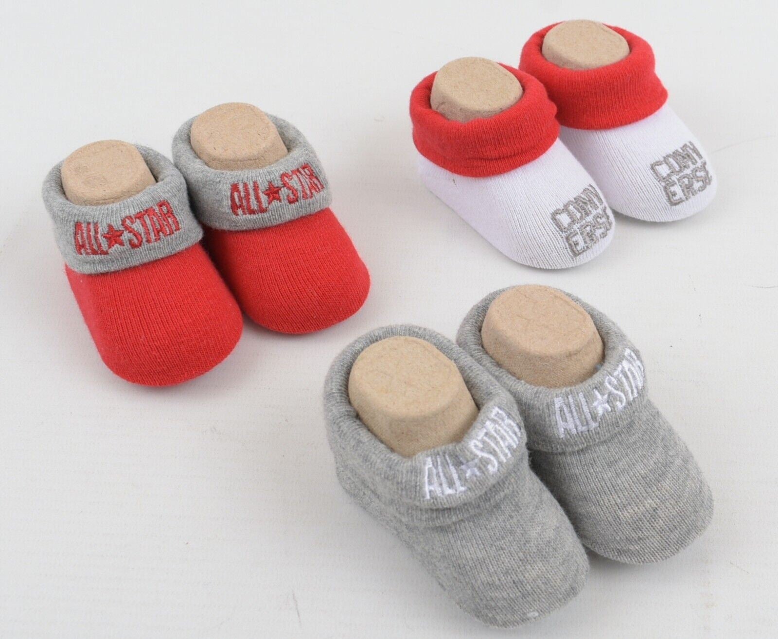 CONVERSE Baby Girls' Boys' 3-pack Sock Booties, Red/White/Grey, 0-6 months