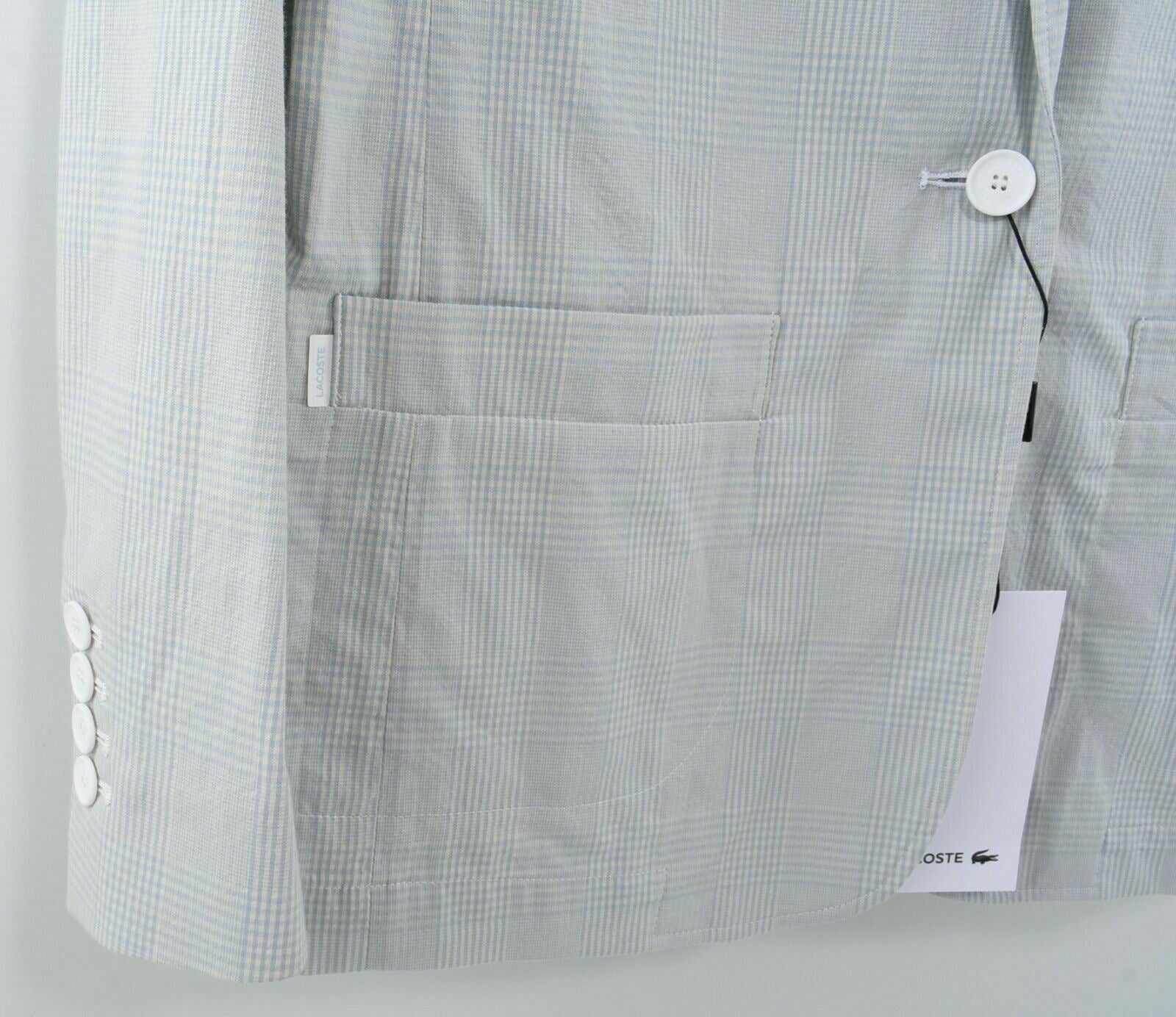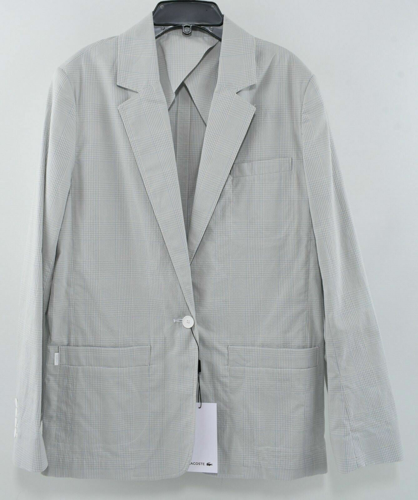 LACOSTE Women's Boyfriend Blazer Jacket, Light Blue Checked, size UK 8