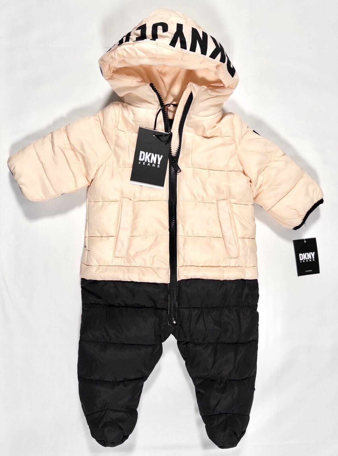 DKNY JEANS Baby Girls All in one Snowsuit Pink Black Size UK 6-9 Months
