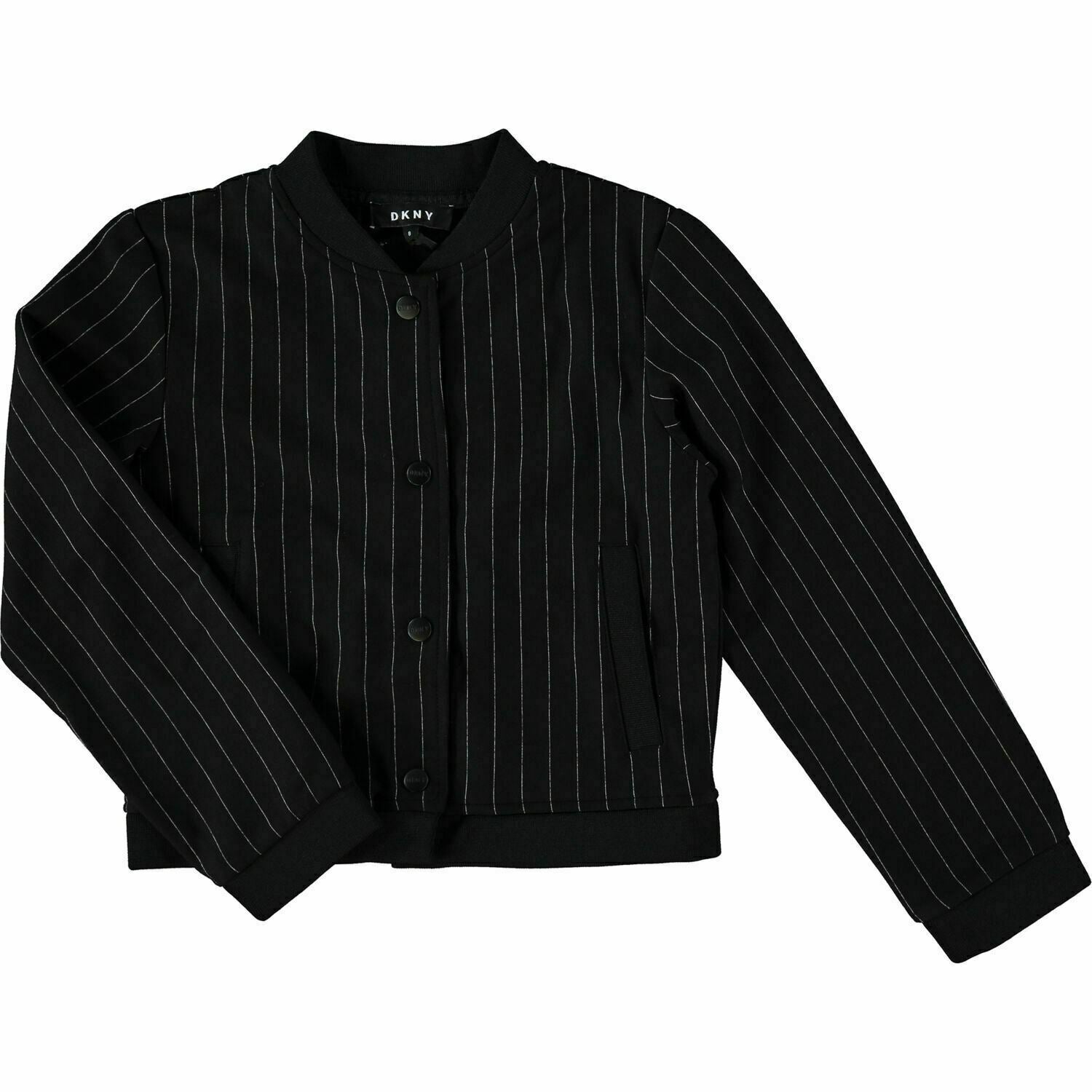 DKNY Girls' Kids' Black Pinstripe Jersey Bomber Jacket, size 8 years