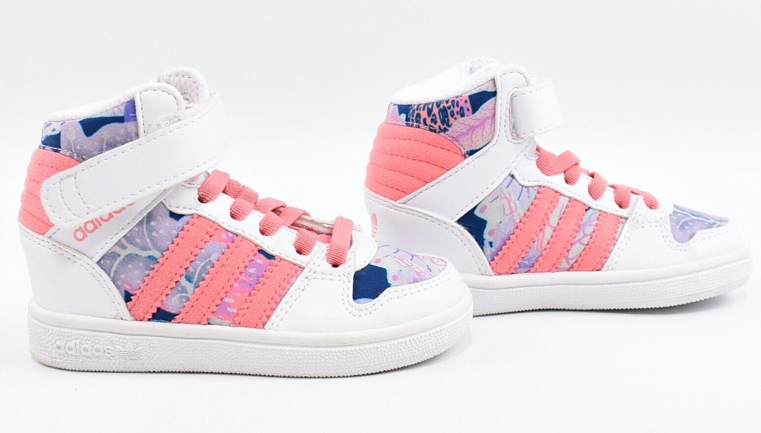 ADIDAS Girls' PROP PLAY 2 High Top Trainers, White-Pink, size infant UK 5 /EU 21