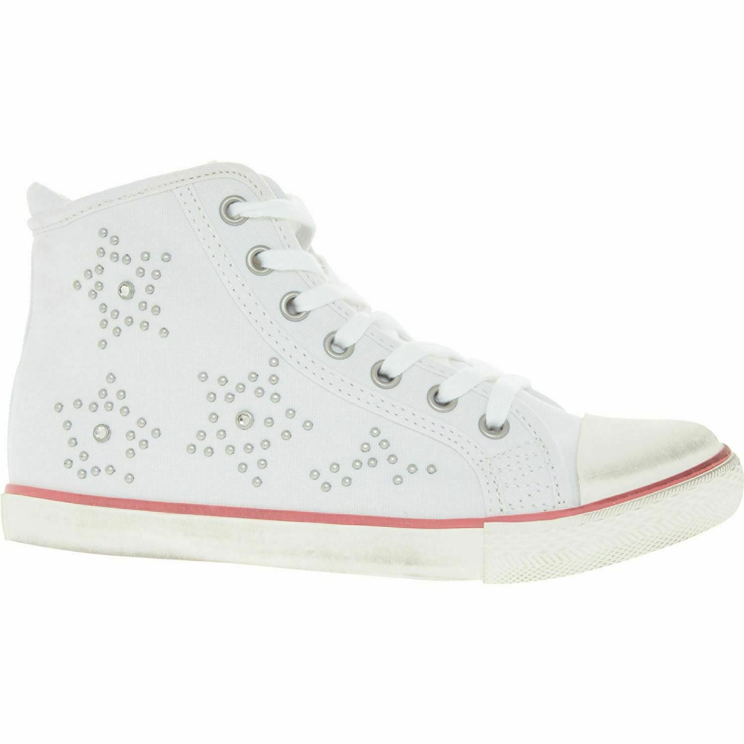 PEPE JEANS Girls' White Distressed Canvas Hi Top Trainers, size UK junior 4