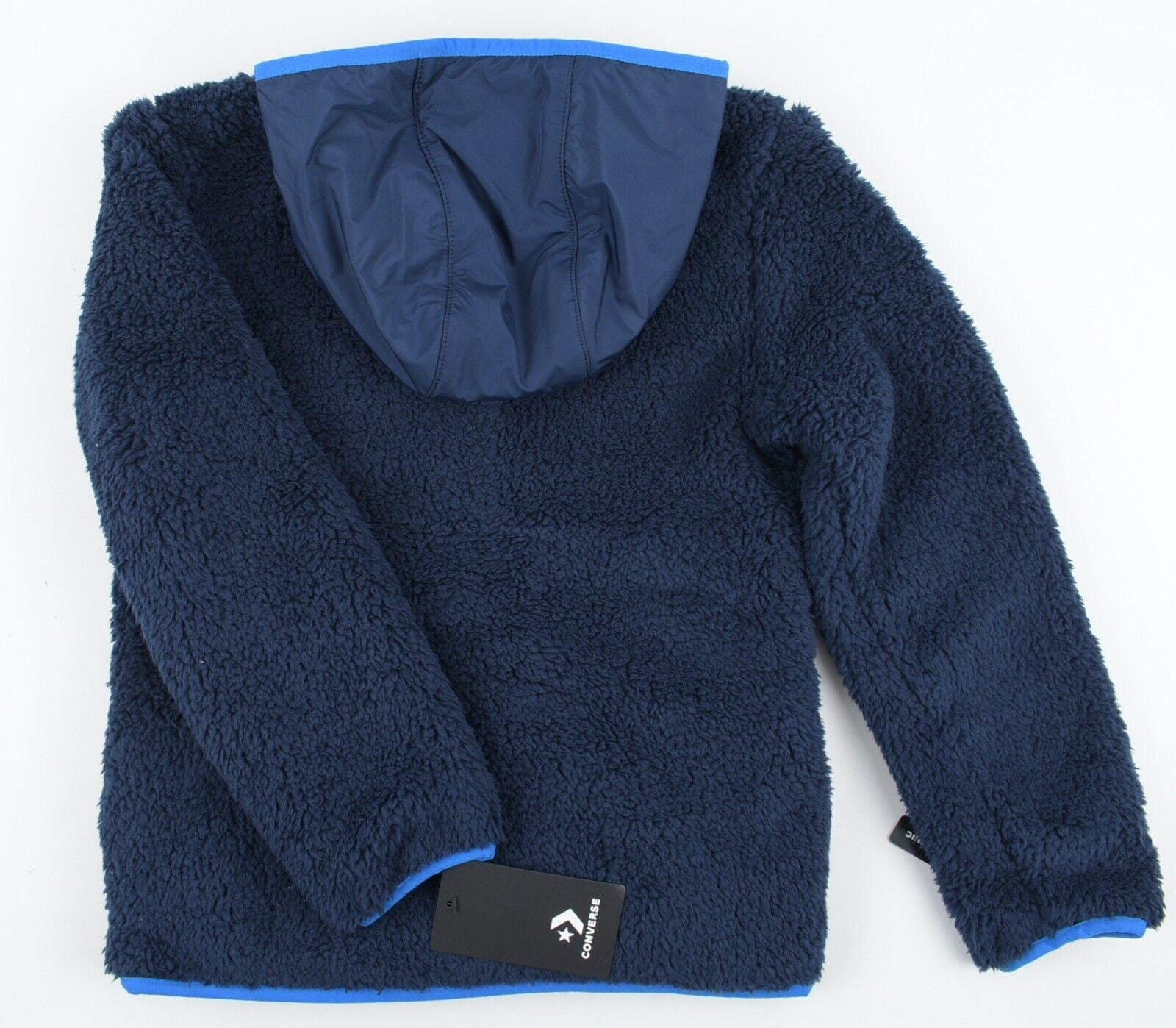CONVERSE Kids' 1/2 Zip Sherpa Fleece Pullover Hooded Jacket, Blue size 7-8 years
