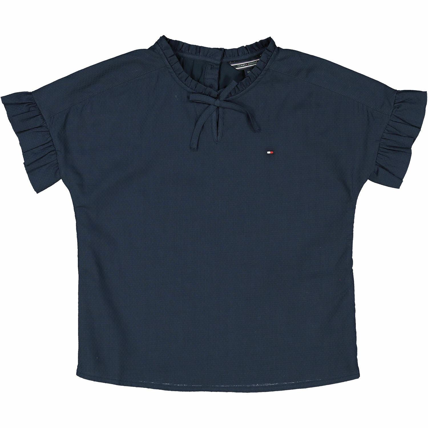 TOMMY HILFIGER Girls' Kids' Ruffle Cuff Top, Navy, 5 years or 10 years