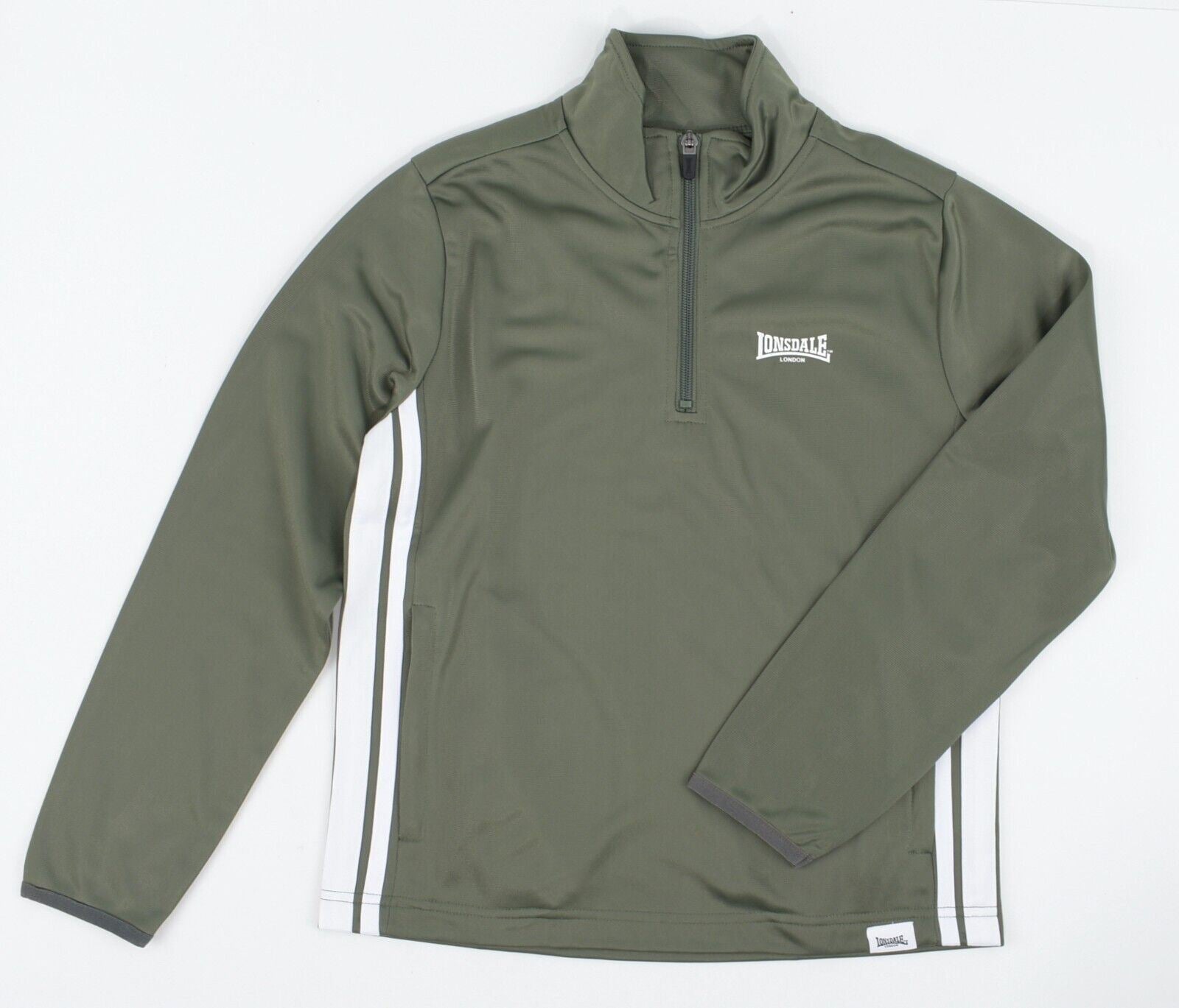 LONSDALE Kids' 1/3 Zip Sweatshirt Top, Khaki Green, size 9-10 years
