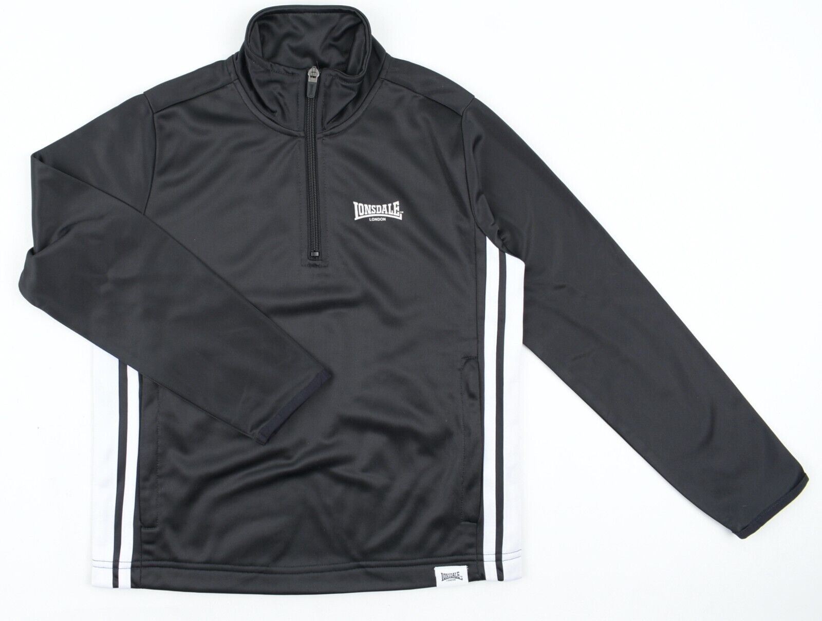 LONSDALE Kids 1/3 Zip Sweatshirt Track Top, Black, size 7-8 years
