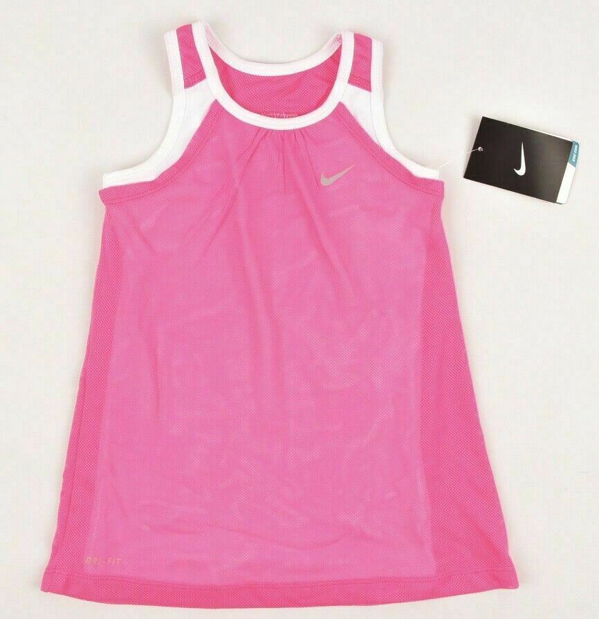 NIKE Girls' Kids' DRI-FIT Layered Top, Pink/White, size 5 years