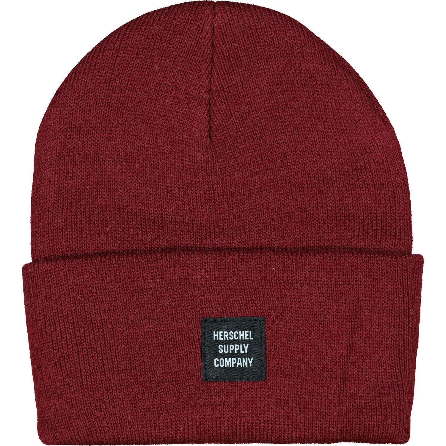 Men's HERSCHEL 'Abbott' Knitted Cuffed Beanie Hat, Wine Red, One Size