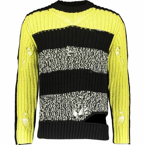 DIESEL Men's DANIEL Black & Yellow Striped Chunky Jumper Sweater, size M