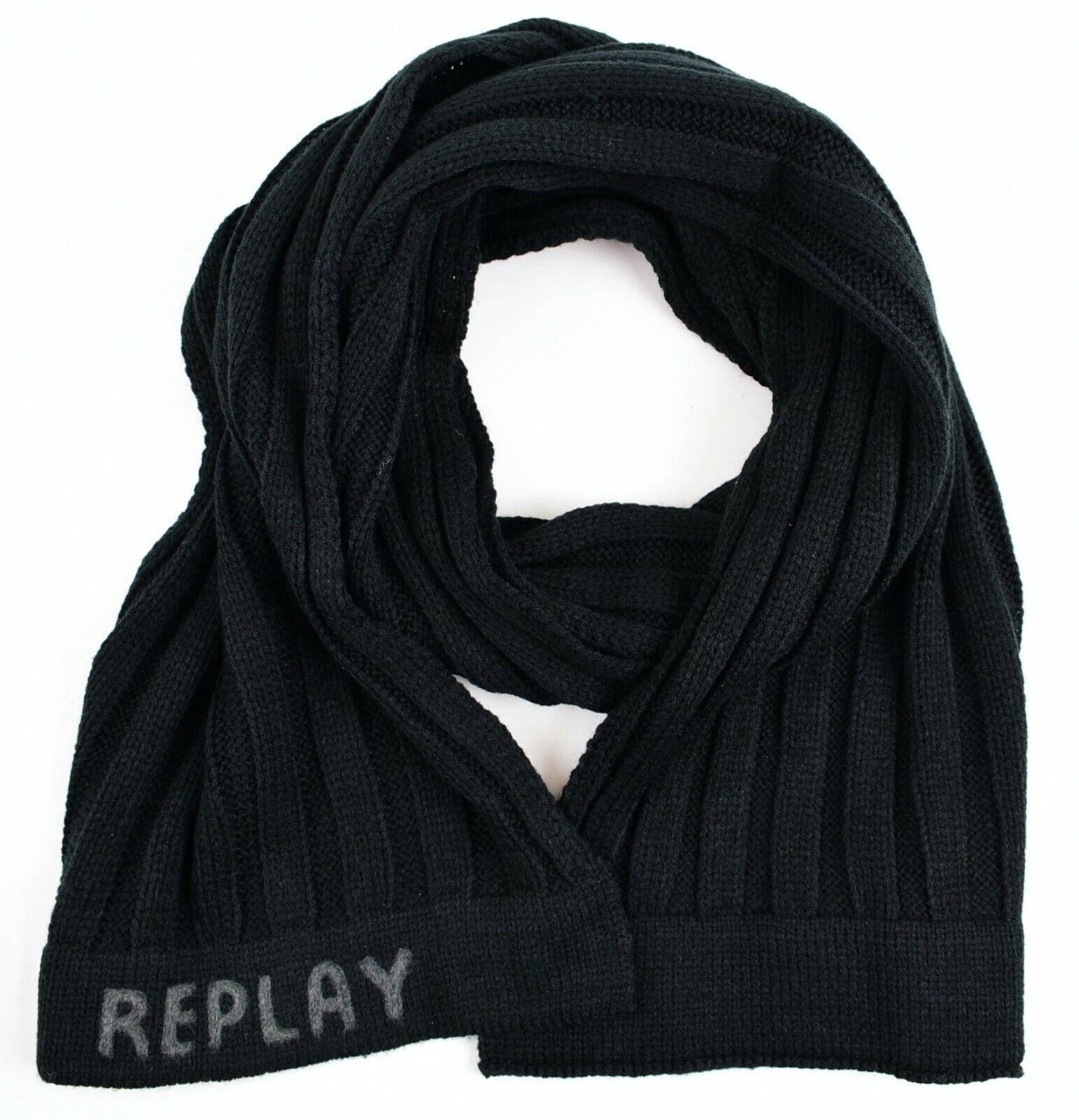 REPLAY Men's Black Rib Knit Scarf, Acrylic /Wool Blend, Gift Boxed