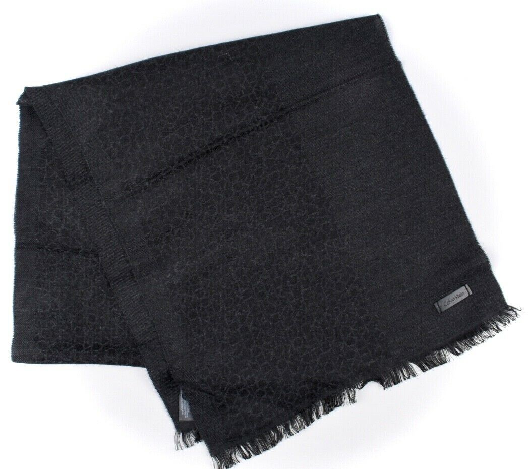 Mens Calvin Klein Wool Blend Grey Scarf, Stylish CK repeating pattern