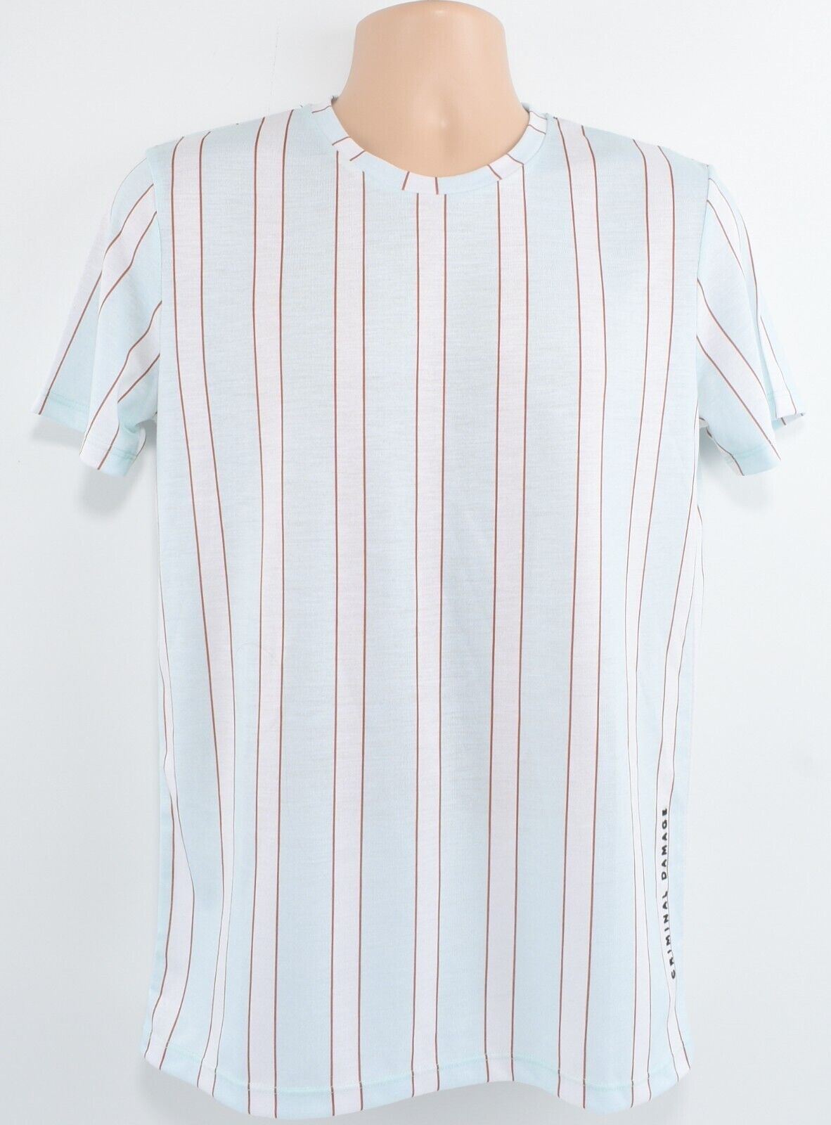 CRIMINAL DAMAGE Men's Striped T-shirt, Mint Green/Multicoloured, size SMALL