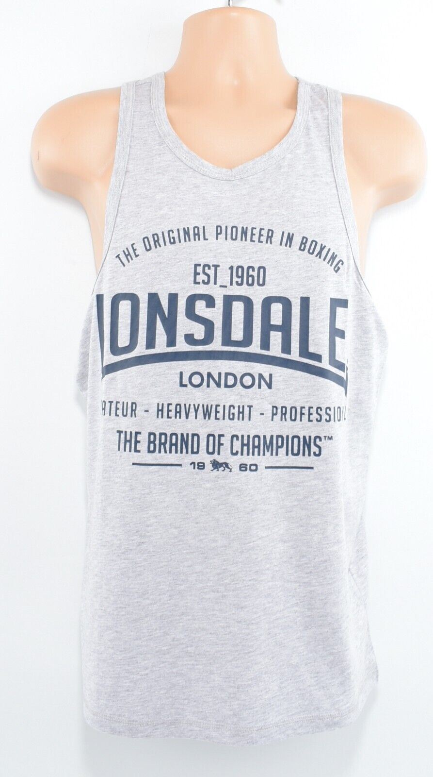 JOB LOT 40 x LONSDALE Men's Boxing Vest Tank Top Grey with Blue Print size SMALL