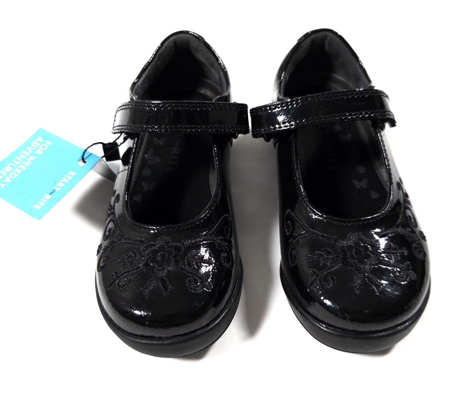 START RITE Kids Girls Black Patent School Shoes Floral Design Size UK 7 G