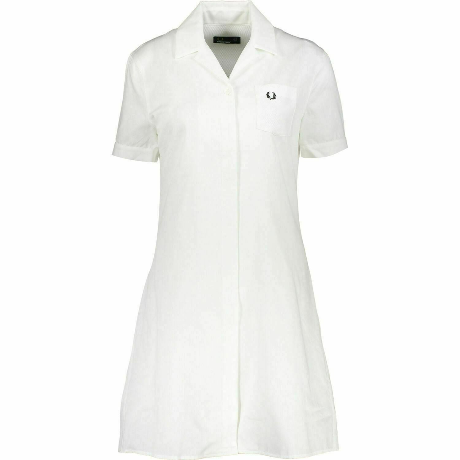 FRED PERRY Women's White Collared Pleated Back Dress, White, size UK 10