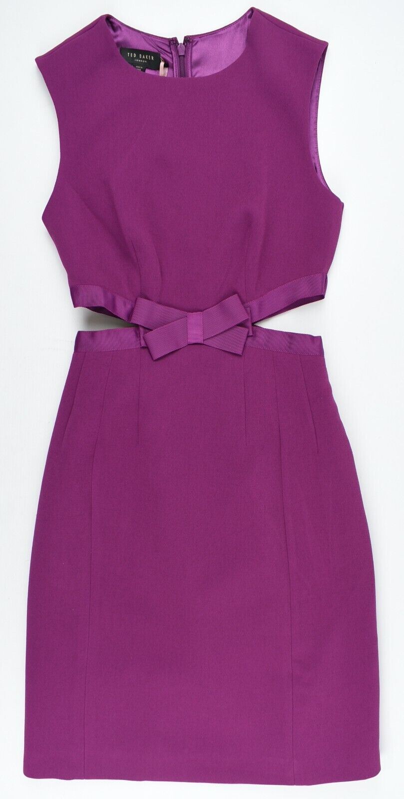 TED BAKER Women's JAYCEE Cut Out Bow Dress, Grape Purple, size UK 6 / Ted size 0