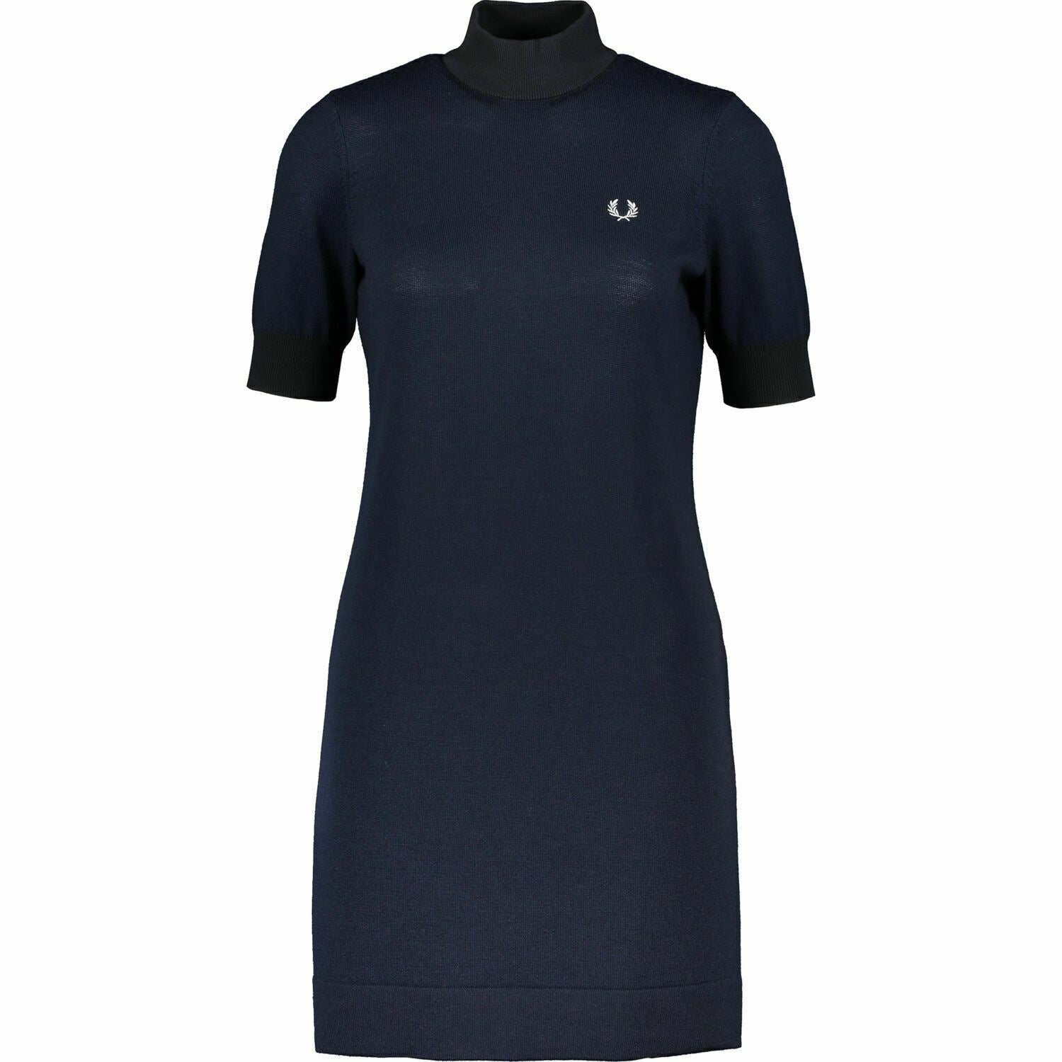FRED PERRY Women's Wool Blend Knitted Dress, Dark Carbon Blue, size UK 8