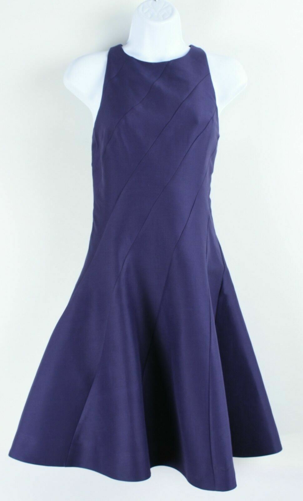 HALSTON HERITAGE Women's Cotton & Silk Fit and Flare Dress, Blue, size UK 8