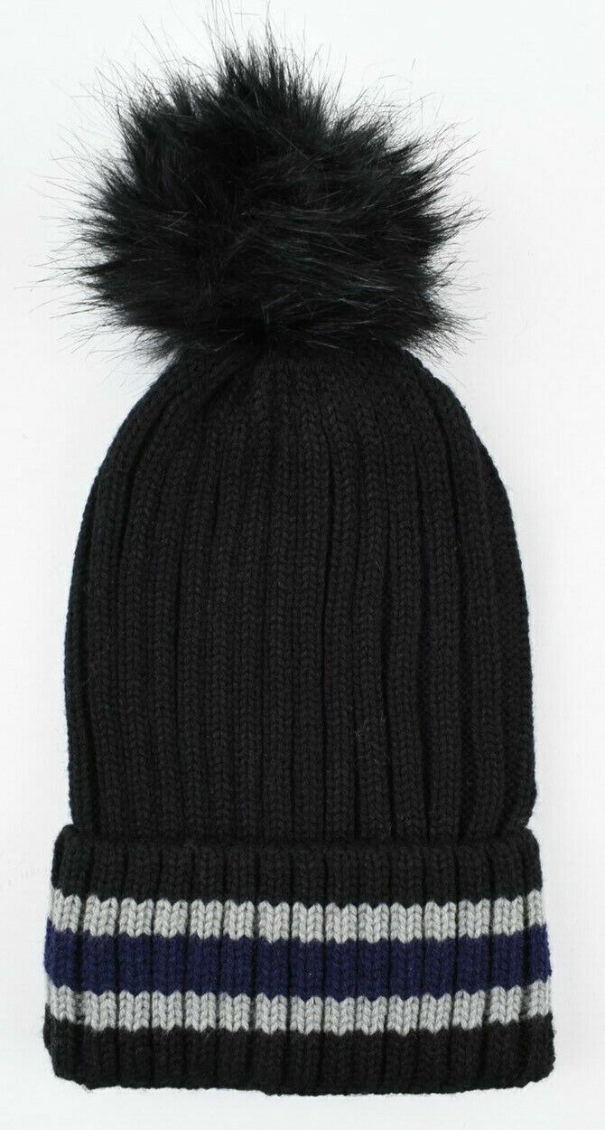 MAYA Copenhaghen - Women's Knitted Hat with Faux Fur Pom Pom, One Size, Black