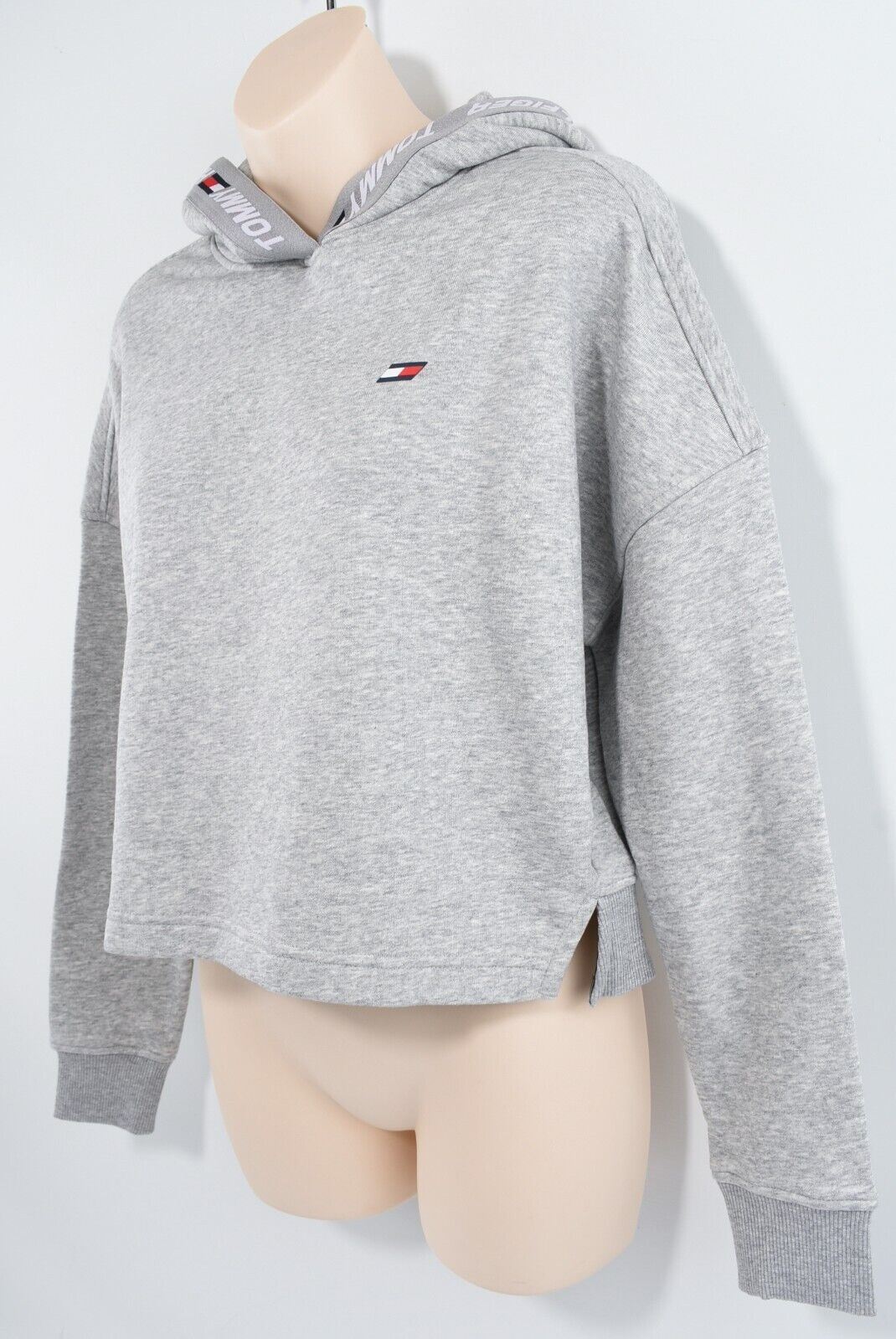 TOMMY HILFIGER Women's Cropped Logo Hoodie, Organic Cotton, Grey, size S (UK 10)