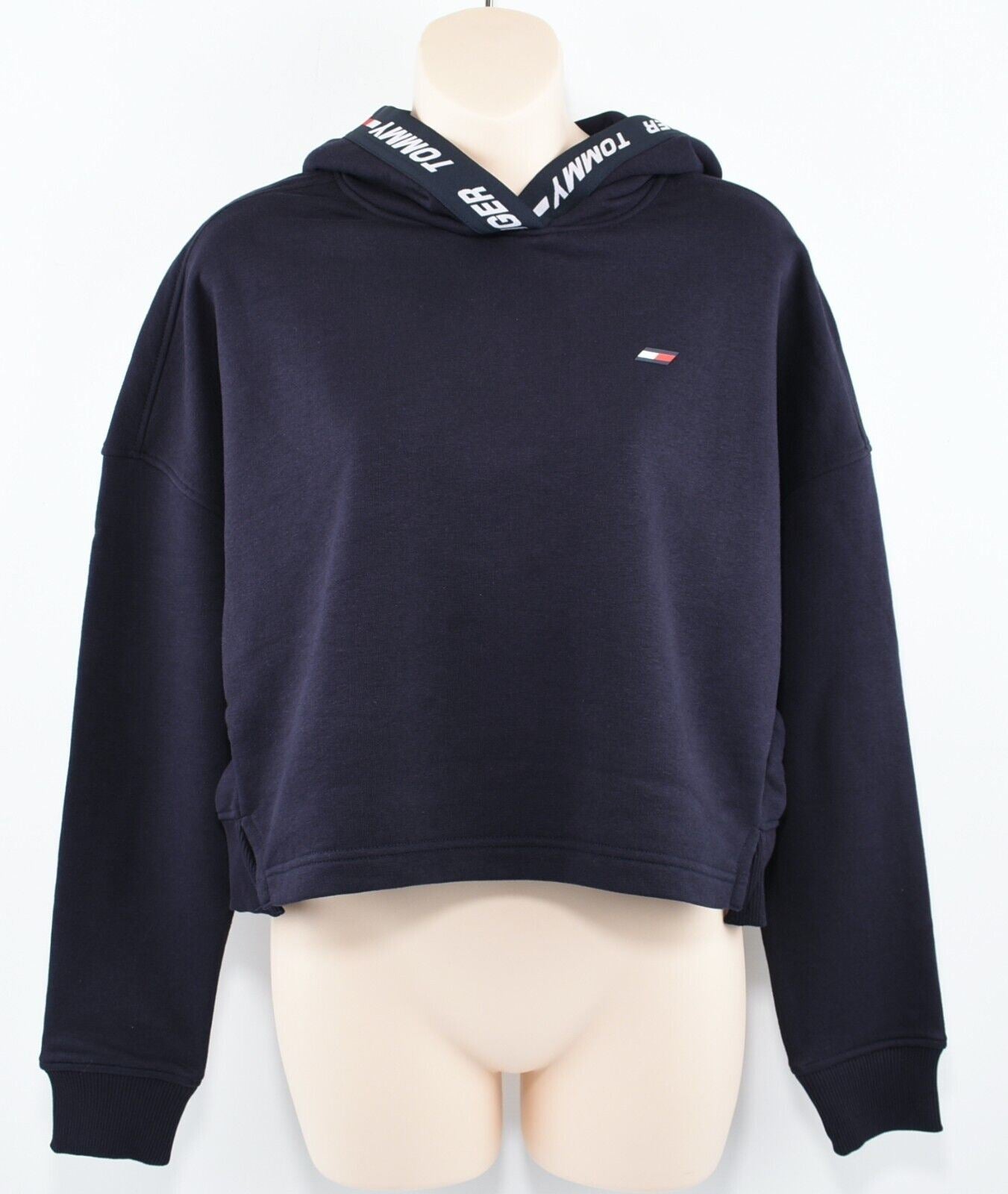 TOMMY HILFIGER Women's Cropped Logo Hoodie, Organic Cotton, Blue, size S (UK 10)