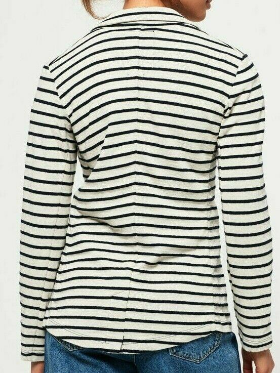 SUPERDRY Women's Nautical Jersey Blazer Jacket, Cream/Navy Blue, size S / UK 10