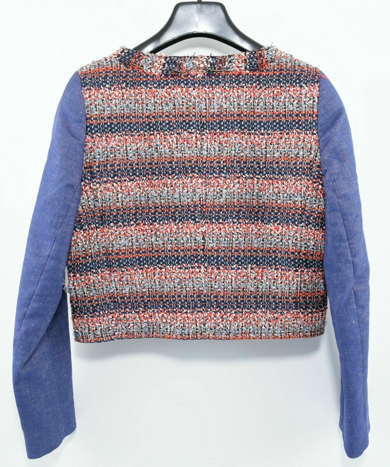 CARVEN Women's Crop Zip Blue/Multicoloured Tweed Jacket, size UK 12