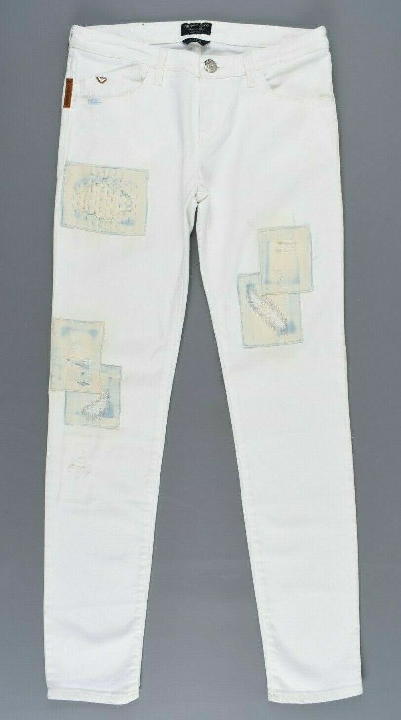 ARMANI JEANS Women's LOTUS Distressed Patch Low Rise Skinny Jeans, Ivory, W25