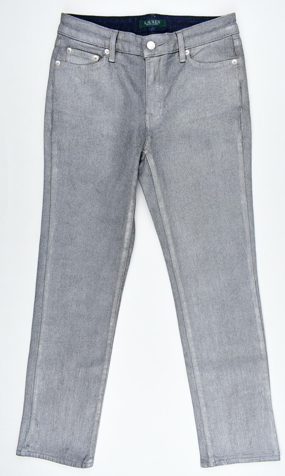 LAUREN RALPH LAUREN Women's Metallic Straight Leg Ankle Jeans, Pewter, size UK 8