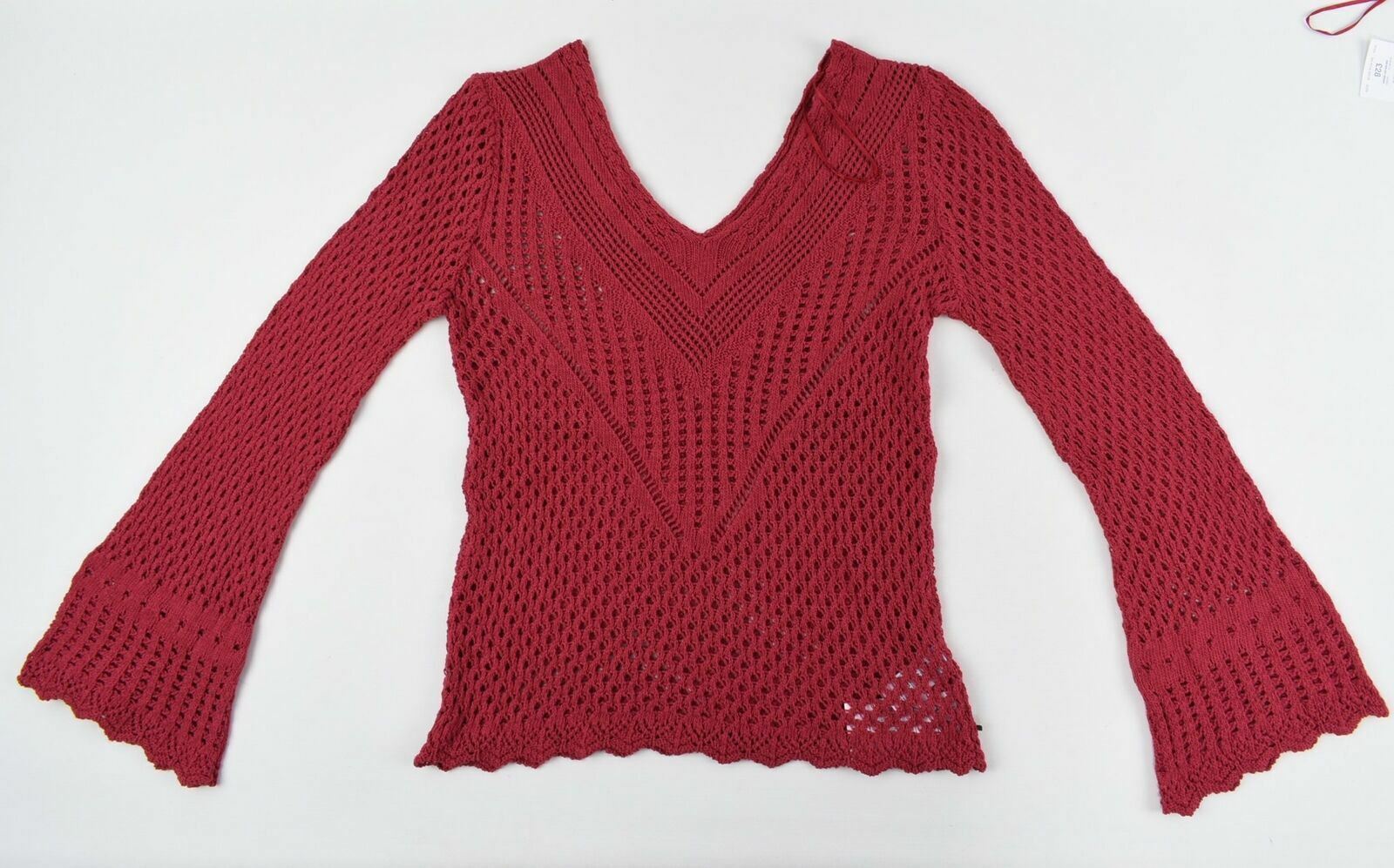 NEXT Women's Maroon Red Knitted V-Neck Pullover Jumper Flared Sleeves- Size XS