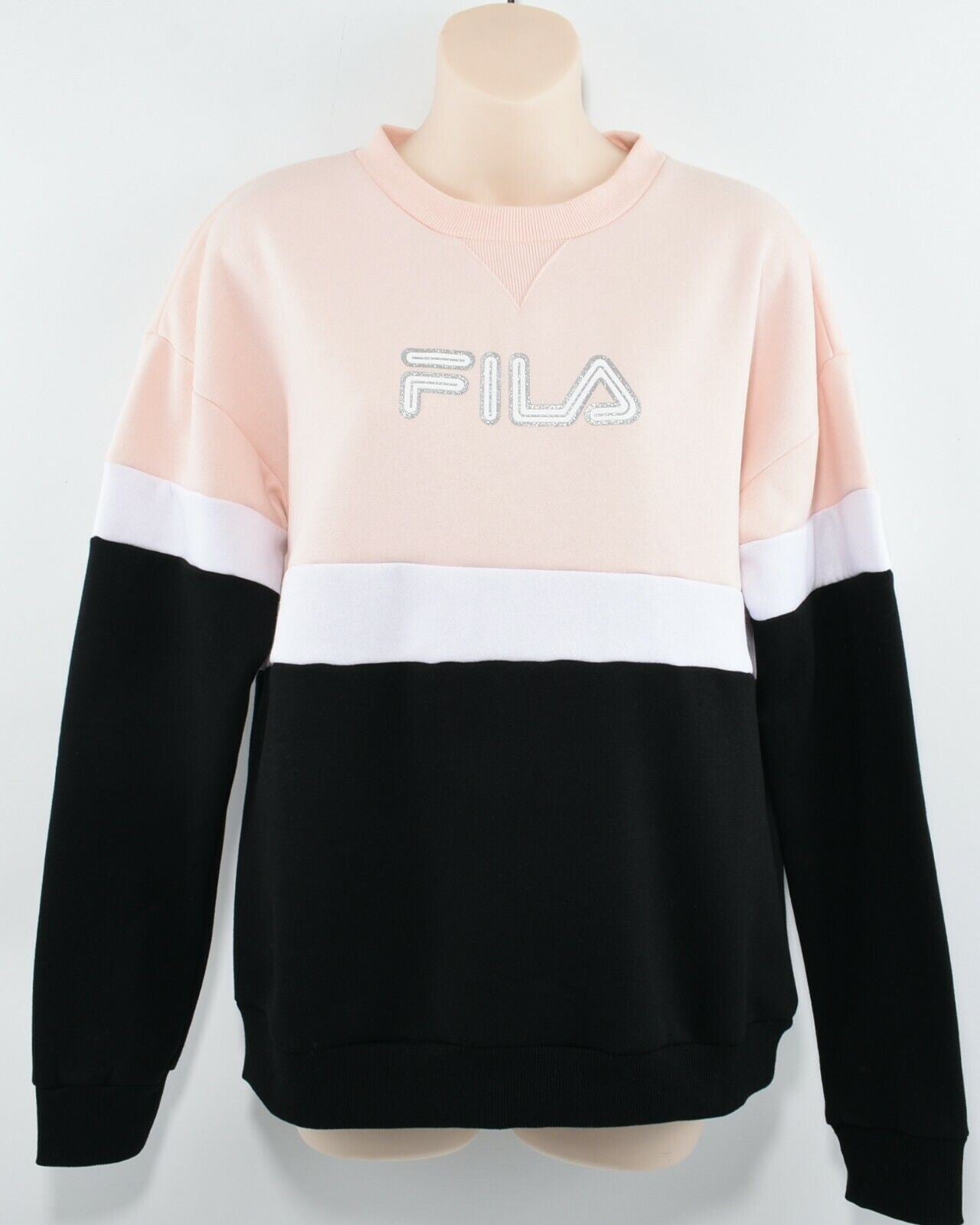 FILA Women's JEM Loose Fit Crew Neck Colour-block Sweatshirt, Pink/Black, size S
