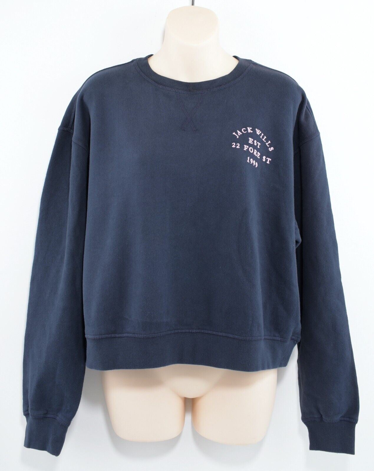 JACK WILLS Women's Crew Neck Cropped Sweatshirt, Navy Blue, size M /UK 12