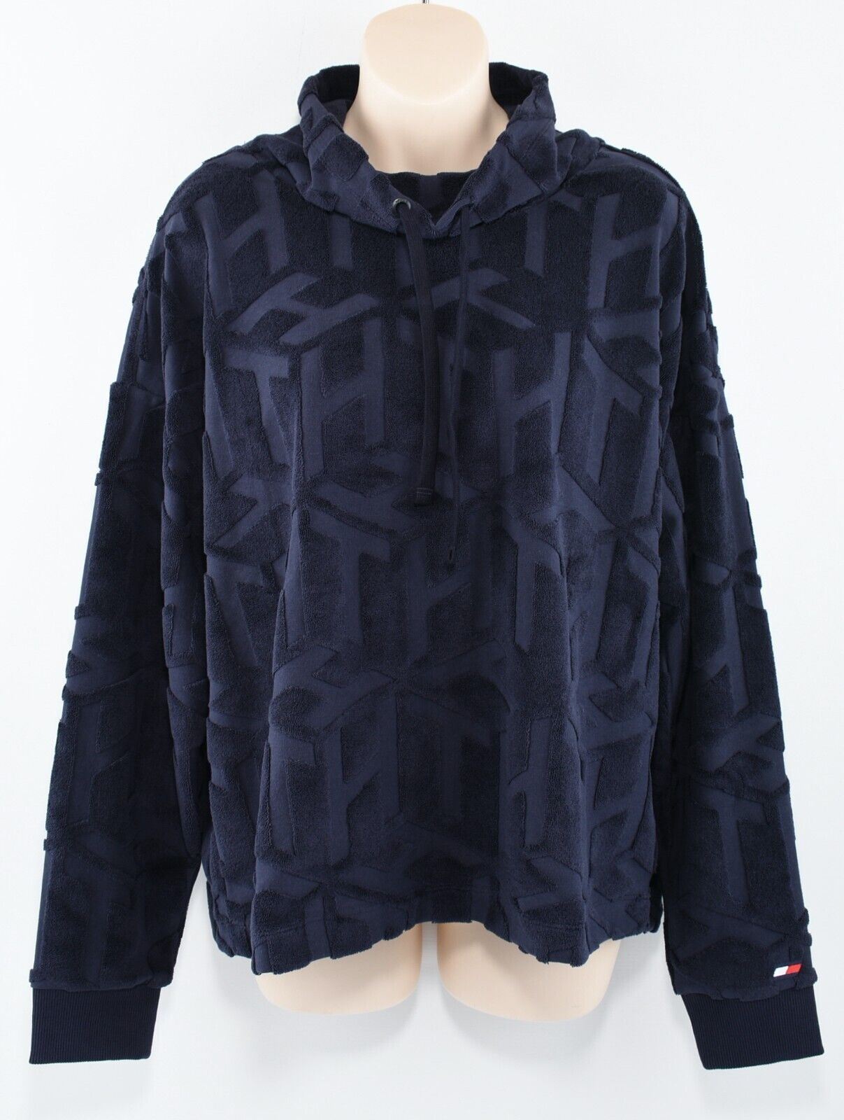 TOMMY HILFIGER Women's Relaxed Textured Cube Sweatshirt, Blue, size M (UK 12)