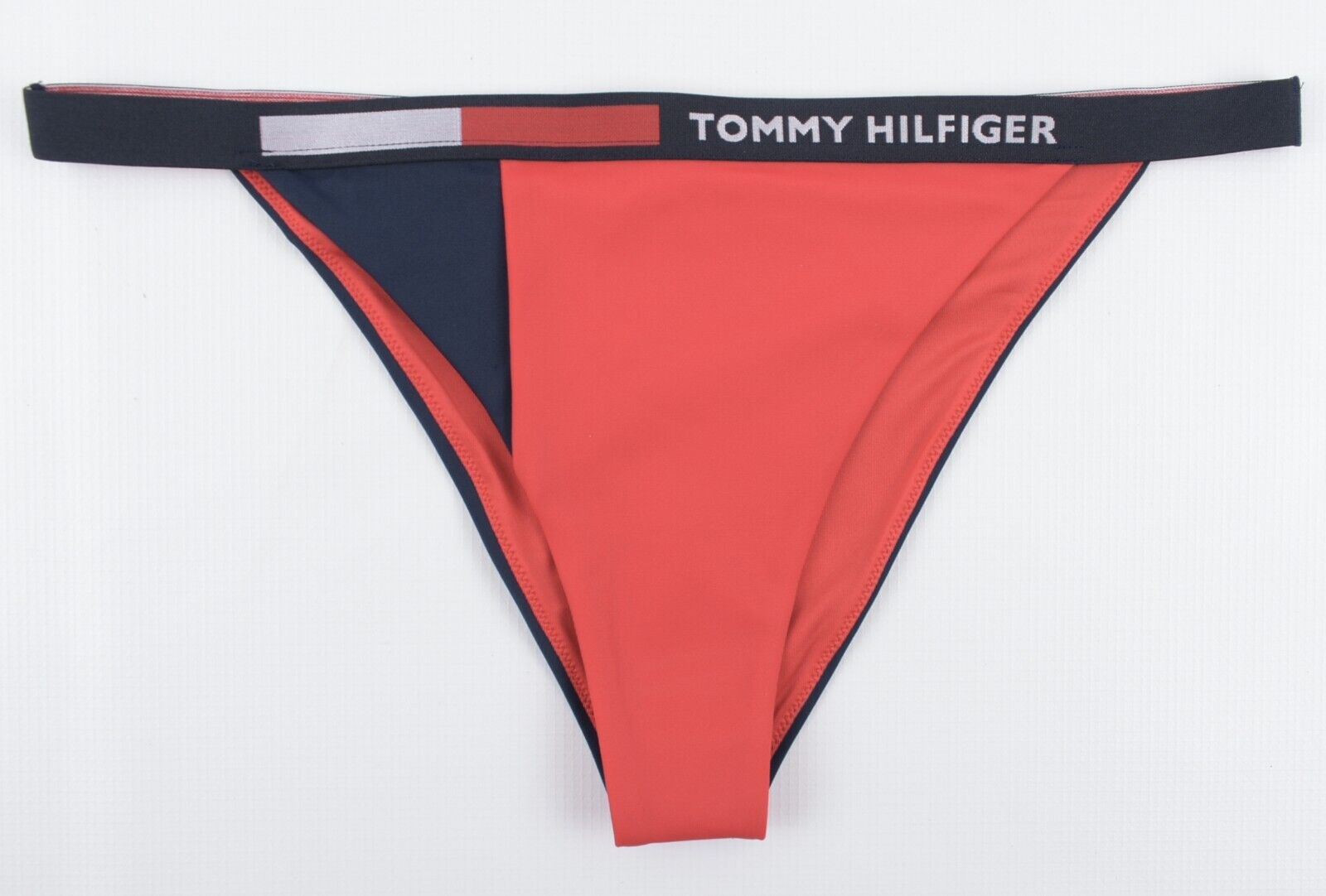 TOMMY HILFIGER Swimwear: Women's Bikini Bottoms, Blue/Red, size M (UK 12)
