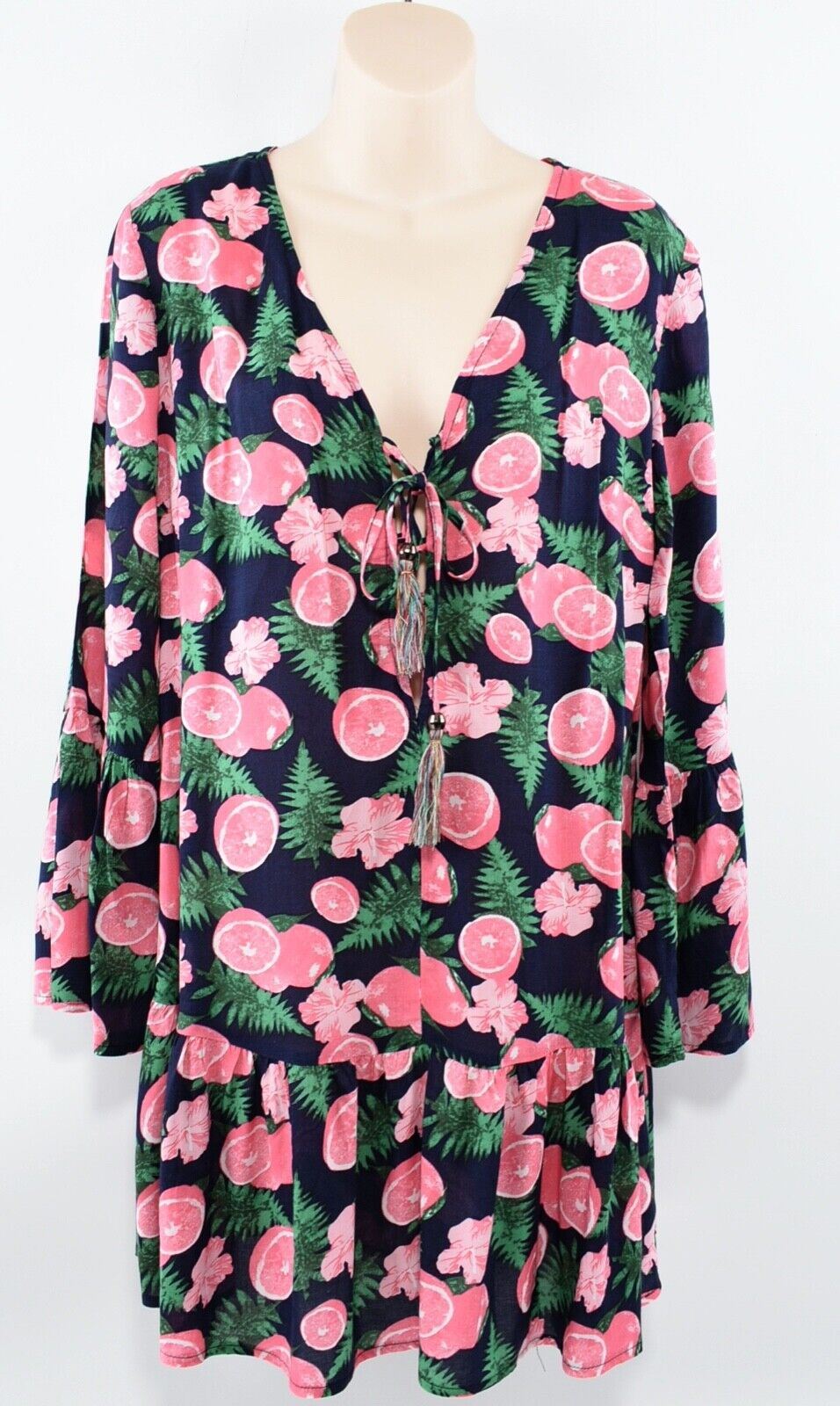 SOLITAIRE Swimwear: Women's Beach Top/ Cover Up, Blue/Pink/Green, size S