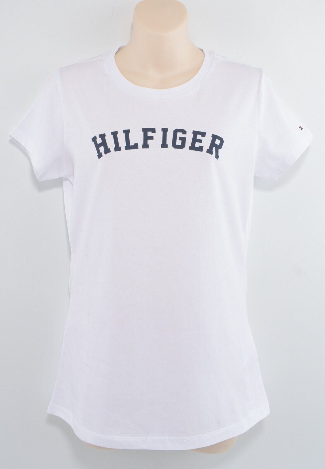 TOMMY HILFIGER Women's ORGANIC COTTON Logo T-shirt, White, size S (UK 10)
