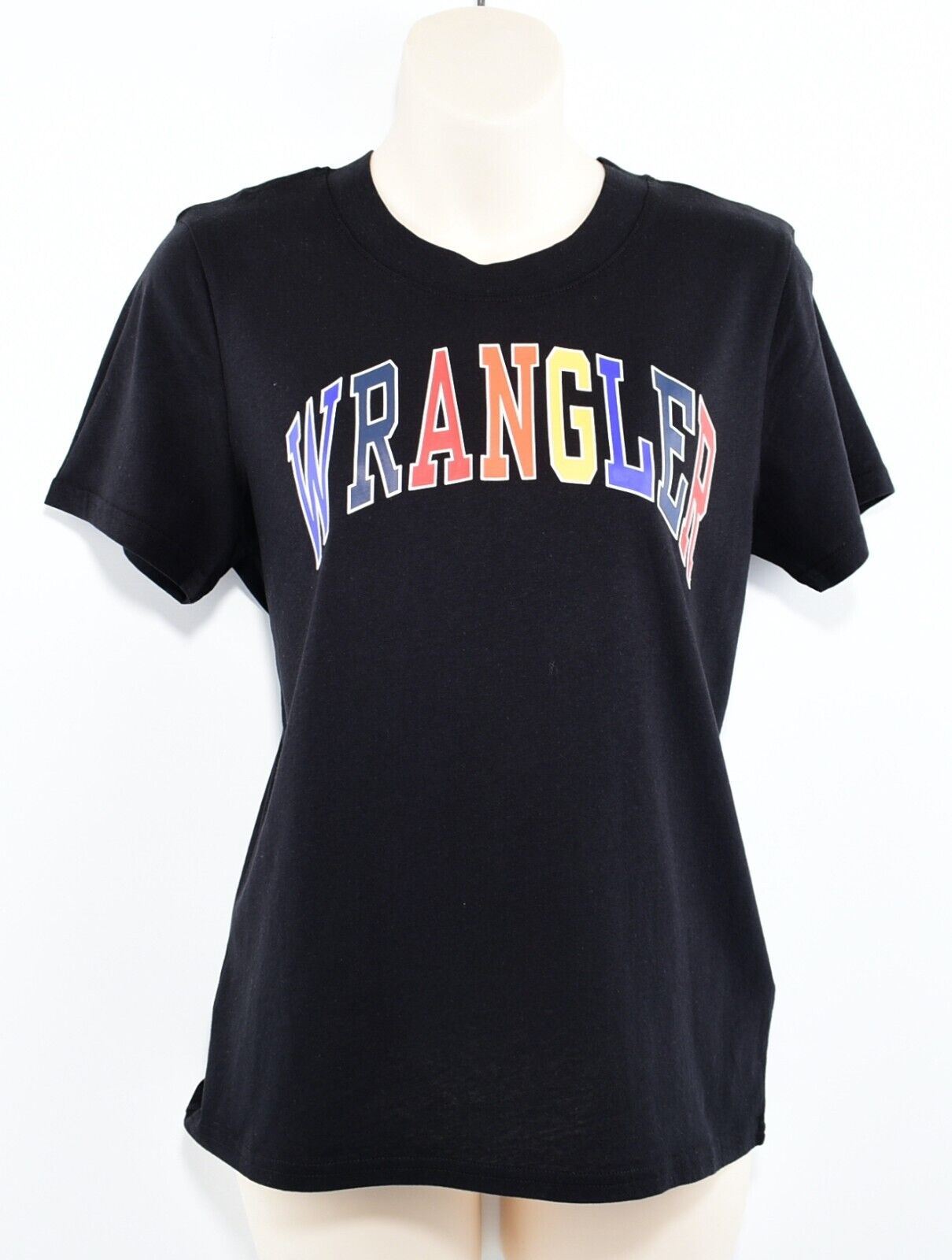 WRANGLER Women's Crew Neck T-shirt, Black/with Multicoloured Logo, size XS /UK 8