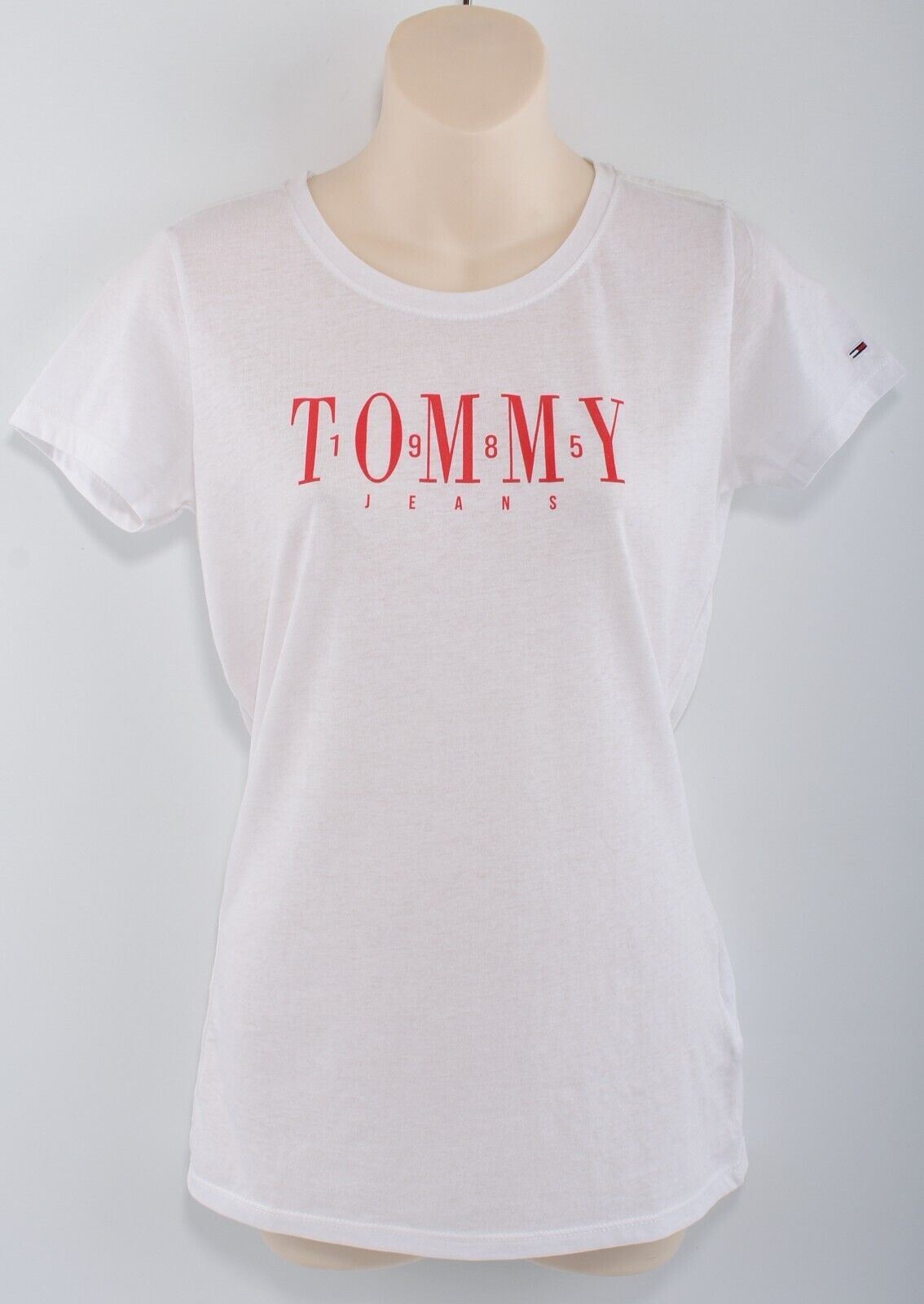 TOMMY HILFIGER Women's Casual Logo Tee, T-shirt, White/Red Logo, size M (UK 12)