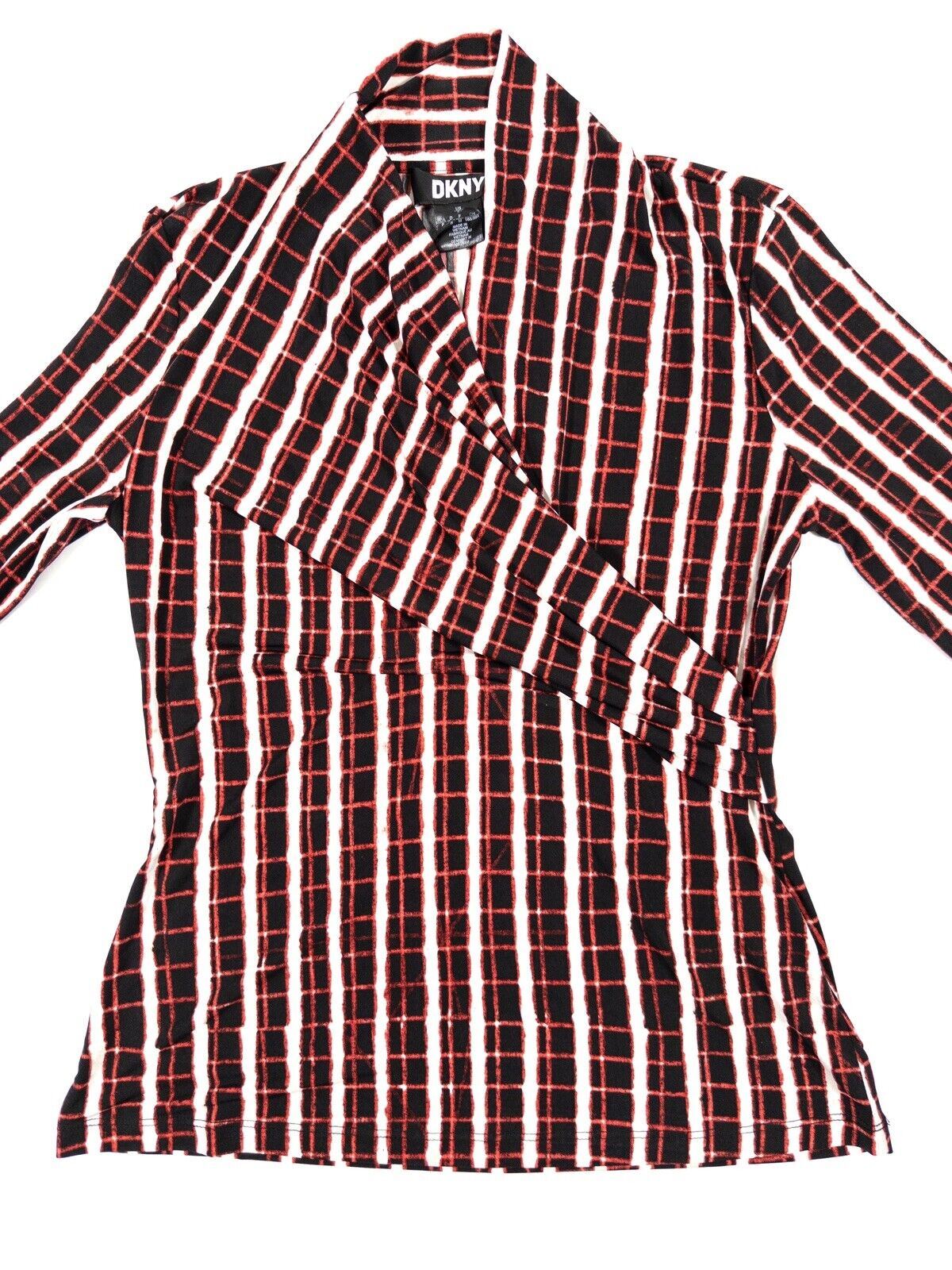 DKNY Women's Red Black and White Smart Top V Neck Size UK Small