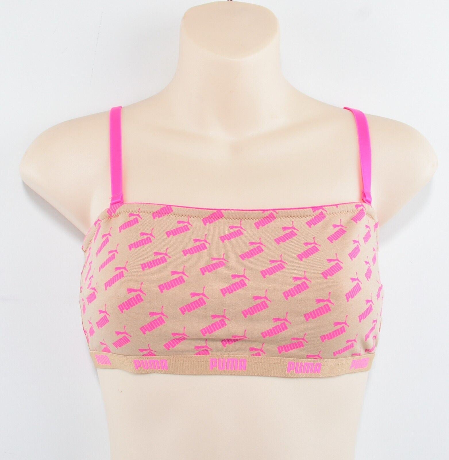 PUMA Women's Cotton Stretch BANDEAU TOP, Logo Print, Nude/Pink, size M